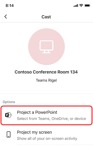 In just a few minutes, you can share a PowerPoint presentation with colleagues on a large screen using only your mobile device and a nearby Teams Room without even arranging a meeting with them. They will be able to see it on a large screen without having to even meet with you.