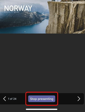 - There is an option to stop the presentation at the bottom of the screen by tapping on the icon that says Stop presenting.