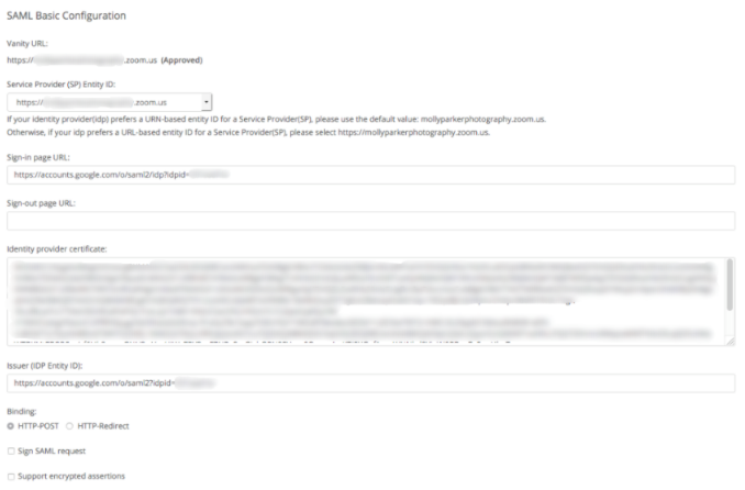 - ACS URL: https://vanityurl.zoom.us/saml/SSO