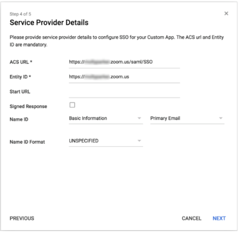 - You can also use the Entity ID set in G Suite to match the URL given in https://vanityurl.zoom.us (Step 7 in the Within Google section).